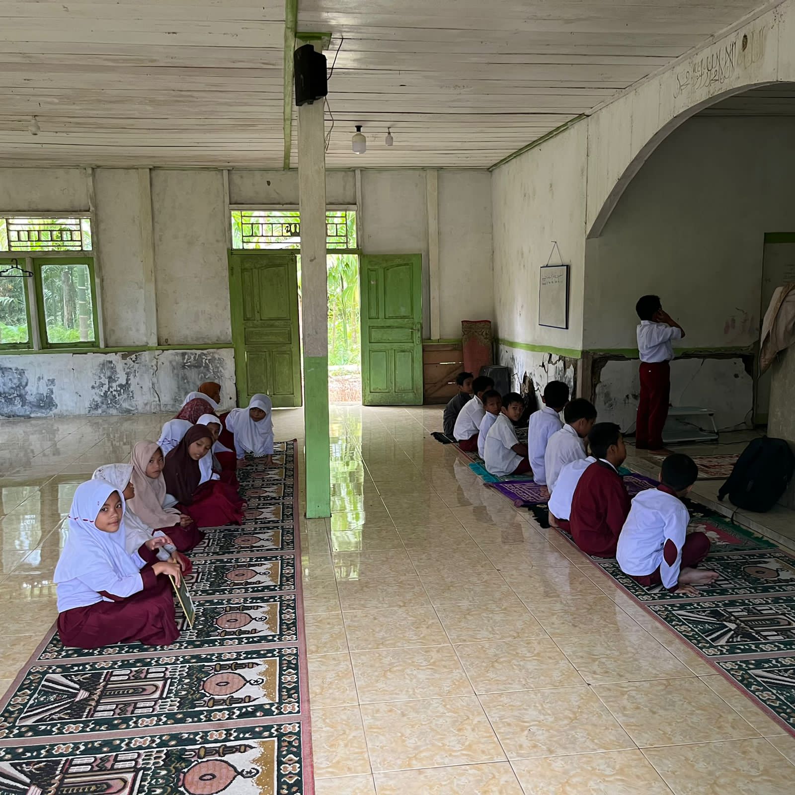 Ketika waktu Zuhur tiba, keheningan rimba pecah oleh kumandang azan yang syahdu dari ananda Abdullah Bin Umar Saibokklo. Suaranya yang polos namun mantap memanggil jiwa-jiwa untuk bersimpuh. Di dalam bangunan sederhana yang fungsional, beralaskan sajadah yang berderet rapi, tampak kemuliaan terpancar. Ustadz Anwar Chaniago حفظه الله berdiri tegak di depan, memimpin barisan kecil namun kokoh itu dalam ruku’ dan sujud yang khusyuk. Shalat berjamaah ini bukan sekadar rutinitas, melainkan pilar iman yang ditanamkan sejak dini—sebuah pemandangan indah di mana kurikulum langit dan bumi bertemu dalam harmoni yang sempurna.