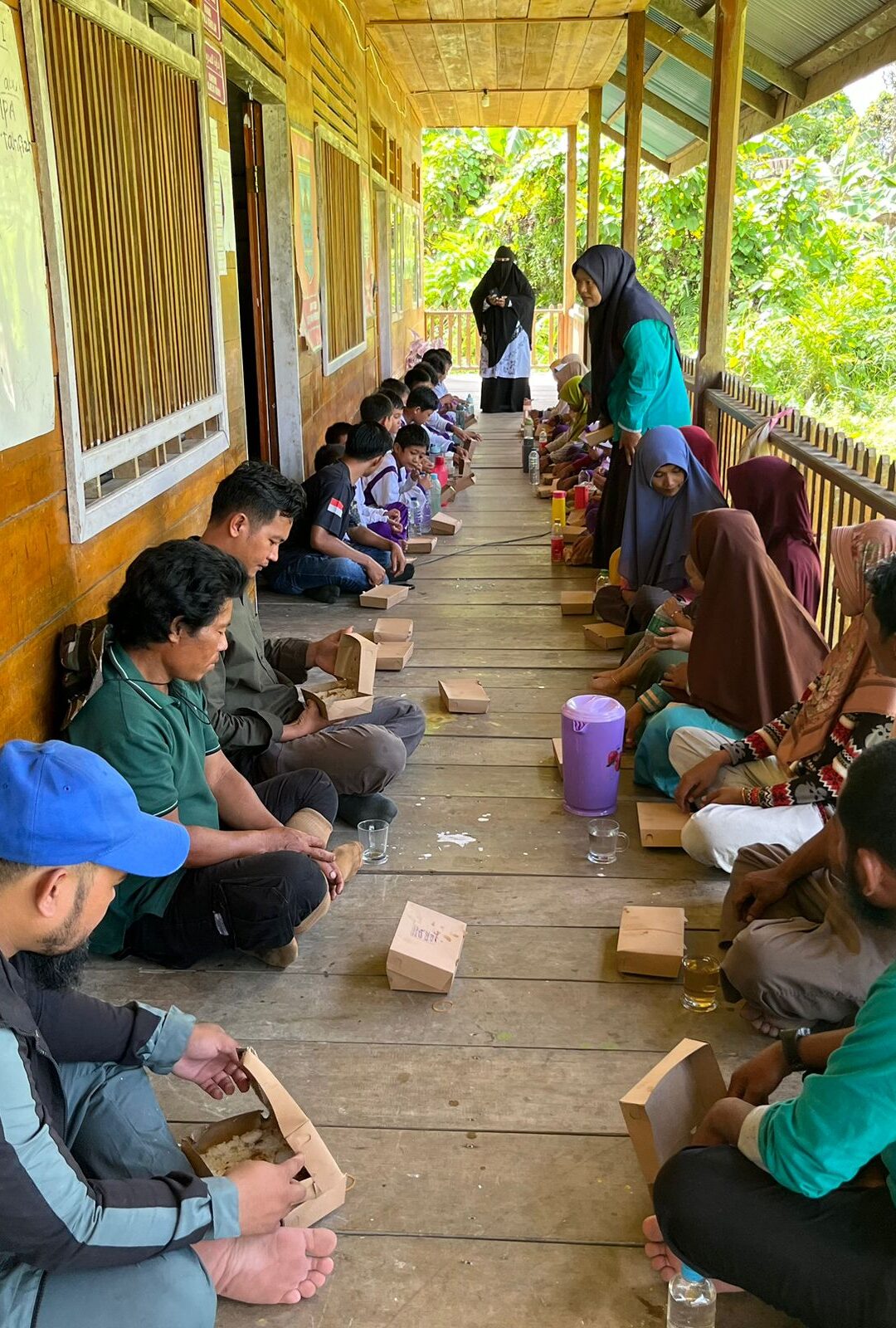 Puncak keindahan hari ini tertuang dalam tradisi makan bersama. Di atas lantai kayu yang menjadi saksi bisu pengabdian, para orang tua, guru, dan santri duduk bersimpuh, meluruhkan sekat jabatan dan status. Aroma hidangan sederhana menyatu dengan aroma tanah basah Siberut, menciptakan suasana kekeluargaan yang tak ternilai harganya. Inilah potret pendidikan sejati di SD Islam Al-Kuttab 1 Mangorut: sebuah institusi yang tak hanya mencerdaskan akal, tetapi juga mengenyangkan jiwa dengan kasih sayang, gotong royong, dan ketaatan kepada Sang Khalik.
