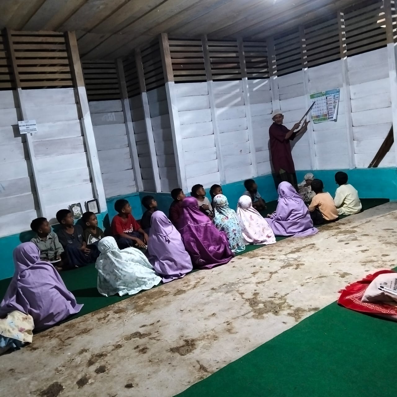 Enam belas pasang mata mungil duduk bersimpuh di atas permadani hijau.