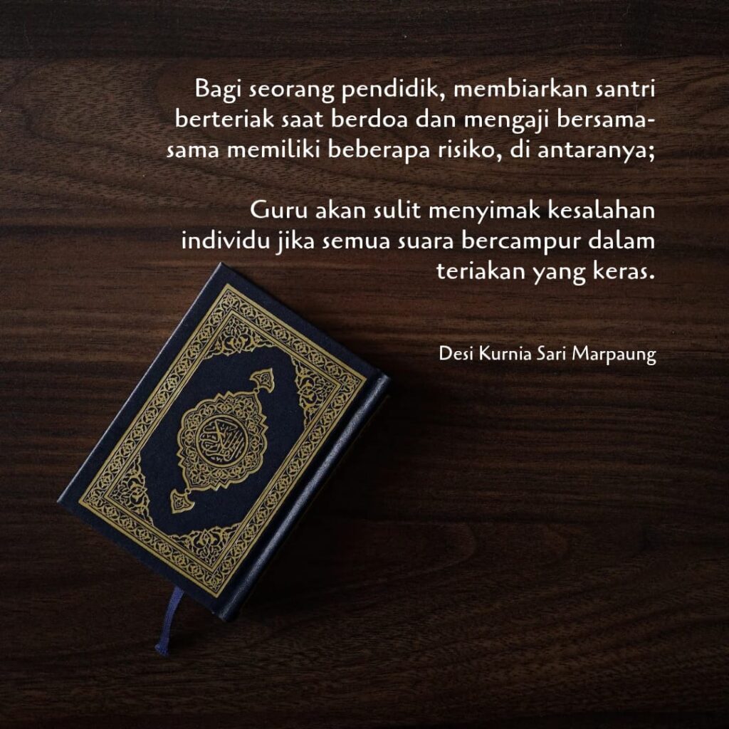 Artikel Islam Adab Berdoa dan Membaca Al-Qur’an: Larangan Berteriak Desi Kurnia Sari Marpaung Januari 21, 2026 0 ﷽ Mengajar Al-Qur’an adalah tugas mulia, namun proses yang berjalan harus selaras dengan adab dan tuntunan syari’at. Related Posts:Keteguhan Hati di Bumi SikereiCahaya Ukhuwah di Jantung SiberutEmbun Iman di Pelataran Siberut Barat DayaKhidmatnya Suasana di Musala Jihad MakoromimitMeniti Persiapan Menuju Bulan SuciMemintal Harapan di Jantung Matotonan Post navigation Previous: Dakwah Mentawai: Harus Dibangun Oleh Tangan-Tangan Anaknya SendiriNext: Cinta Menembus Ombak Berita Lainnya Artikel Islam Transformasi Masjid Insan Madani Mentawai: Menghapus Jejak Banjir, Membangun Kenyamanan Ibadah Umar Bin Khatab Saibokklo Maret 20, 2026 Artikel Islam PMO (Pornografi, Masturbasi, Orgasm) Desi Kurnia Sari Marpaung Februari 14, 2026 0 Artikel Islam Haus Pengakuan, Rela Manipulasi Kenyataan Desi Kurnia Sari Marpaung Februari 5, 2026 0 Tinggalkan Balasan Batalkan balasanAnda harus masuk untuk berkomentar.